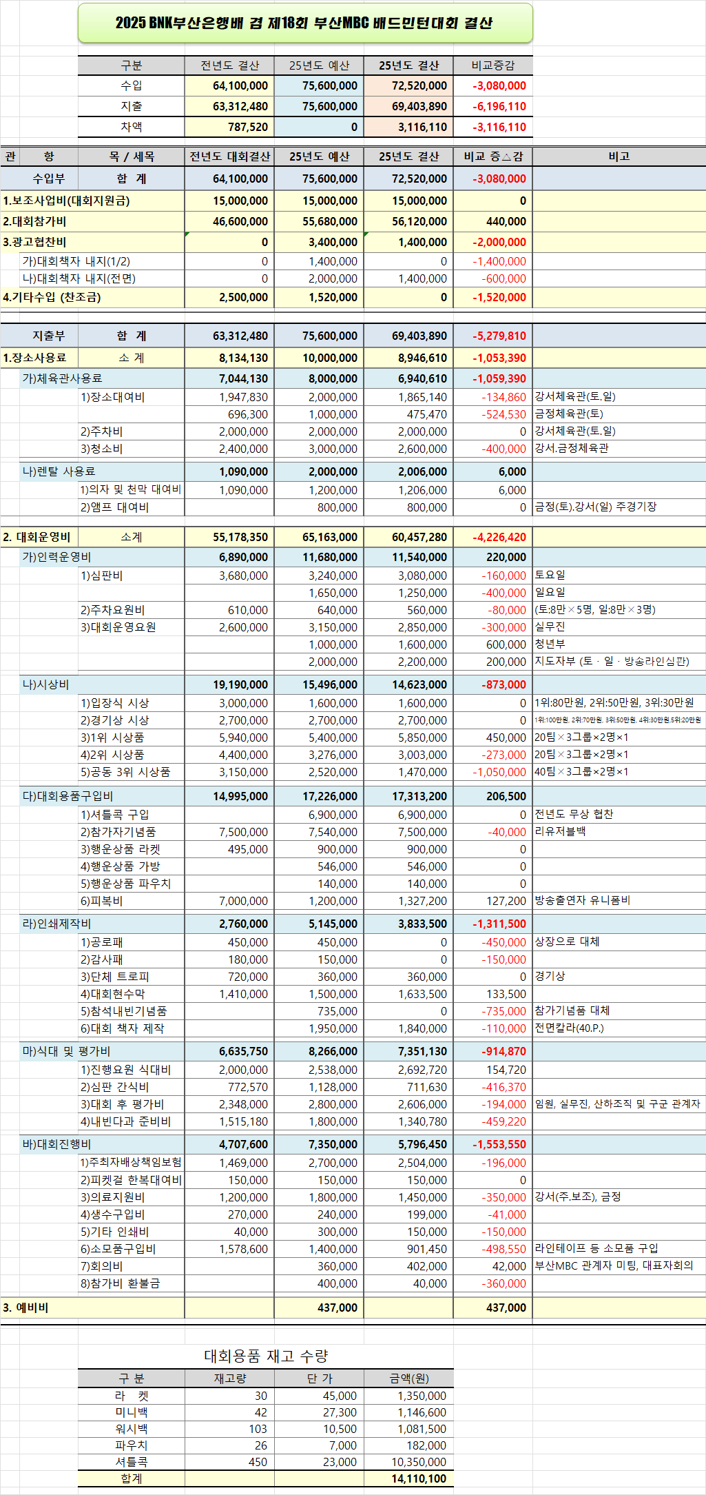 BNK부산은행배 제18회 부산MBC배드민턴대회 결산서