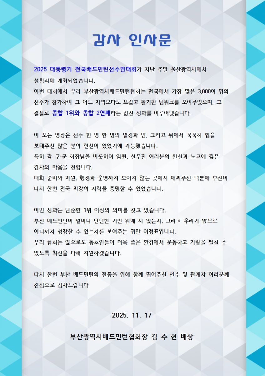 2025 대통령기배드민턴대회 감사인사문